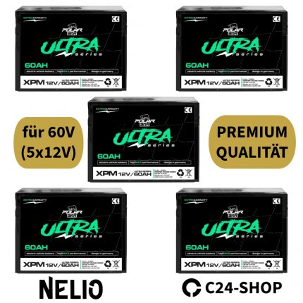 Ursprünglicher Preis war: 2.398,00 €1.199,00 €Aktueller Preis ist: 1.199,00 €.60V 60Ah Batteriepack (5x 12V 60Ah) PREMIUM Batterie AGM GEL Lead Acid Blei-Gel-Batterie Bleibatterie VRLA als Ersatz für TNE12-65 6-DMF-58 6-EVF-58 für Kabinenroller Micorcars Elektrofahrzeuge als Ersatz für 45Ah 58Ah 65Ah Polar Bär Ultra Serie XPM