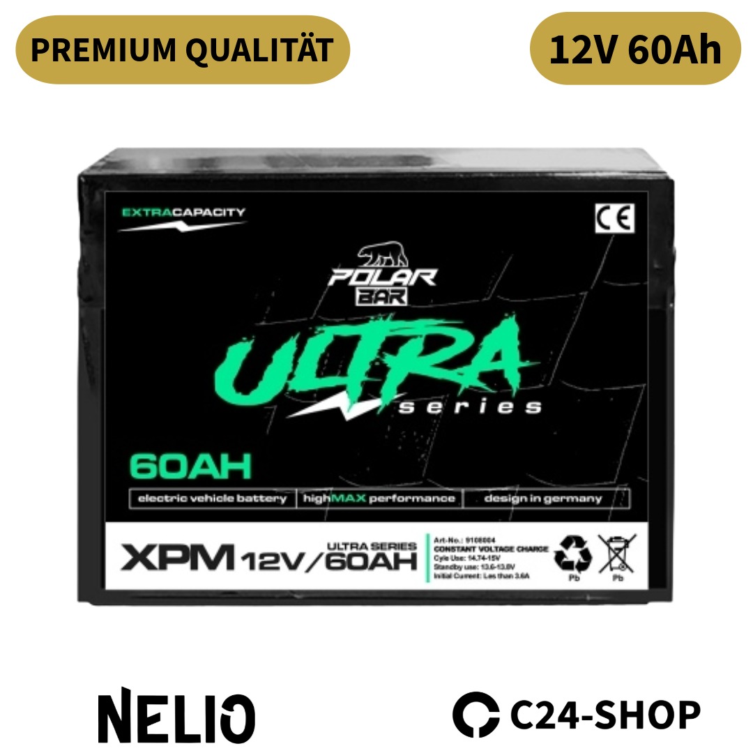 Die Polar Bär Ultra Serie XPM 12V 60Ah AGM Powerbatterie ist eine leistungsstarke und wartungsfreie Versorgungsbatterie für Elektrofahrzeuge, Kabinenroller, kleine Lastentransporter sowie verschiedene Elektrofahrzeuge. Dank moderner AGM-Technologie (Absorbent Glass Mat) überzeugt sie durch eine zuverlässige Energieversorgung, hohe Zyklenfestigkeit und eine lange Lebensdauer.